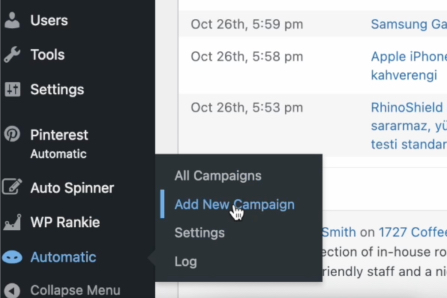 2- Under the WordPress Automatic Plugin menu, click New Campaign