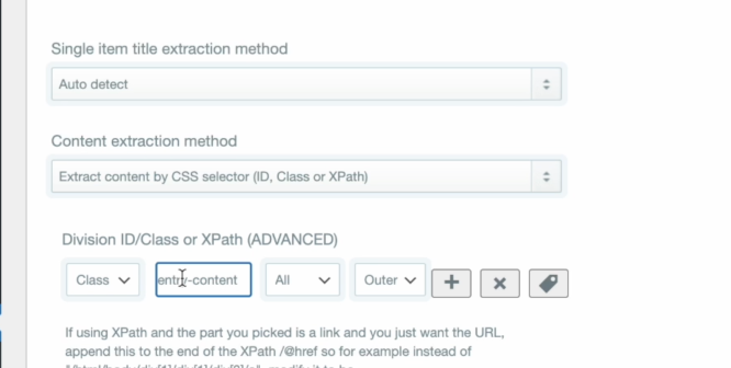 5- Set the content extraction method to be by Class and add the correct class name by using the browser inspect element feature