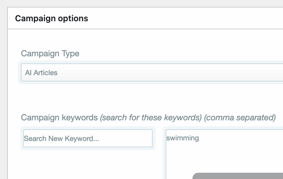 4. Select AI as the campaign type and add your keywords